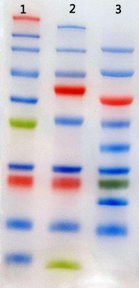 預染蛋白Marker幾種純化好的蛋白,與染料共價偶聯后混合而成。預染蛋白Marker的出現方便我們在電泳時、電泳后以及轉膜后檢測電泳情況和估計遷移率,是做WesternBlot最的蛋白Marker。