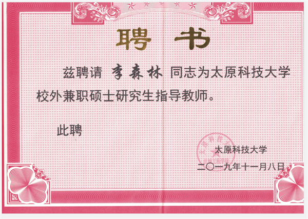 卷板機(jī) >> 新聞中心 >> 我司工程師李森林受聘為燕山大學(xué)等校碩士生導(dǎo)師